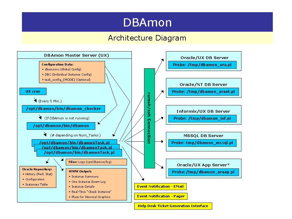 DBAmon runs on a UX server and monitors UX (Oracle and Informix)
